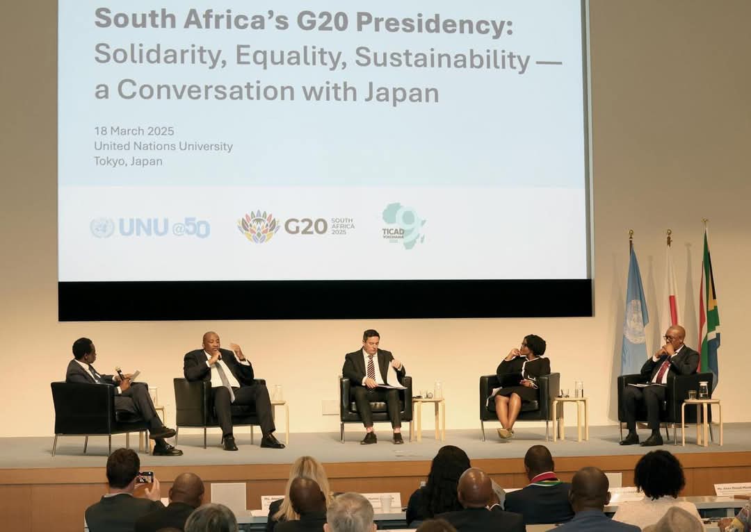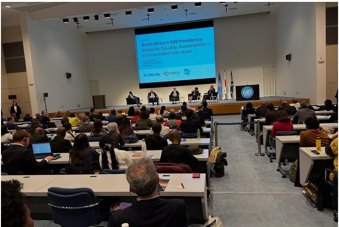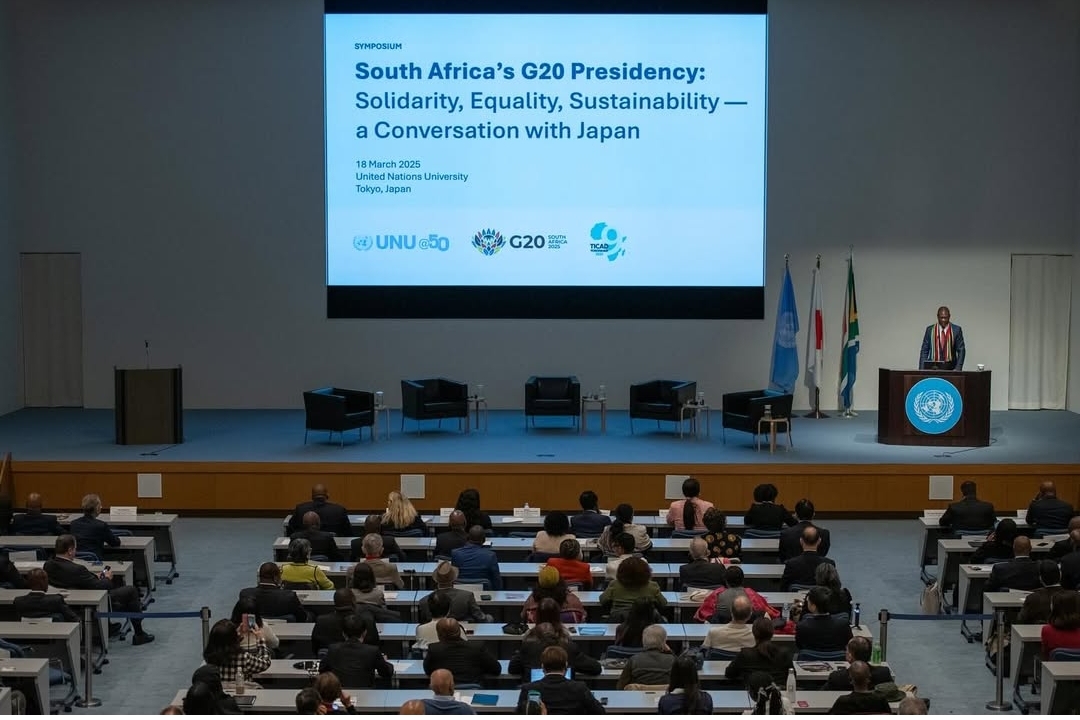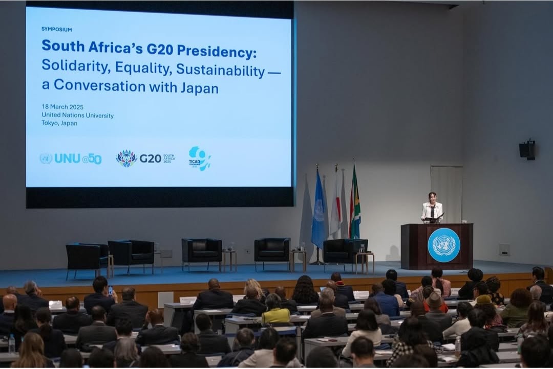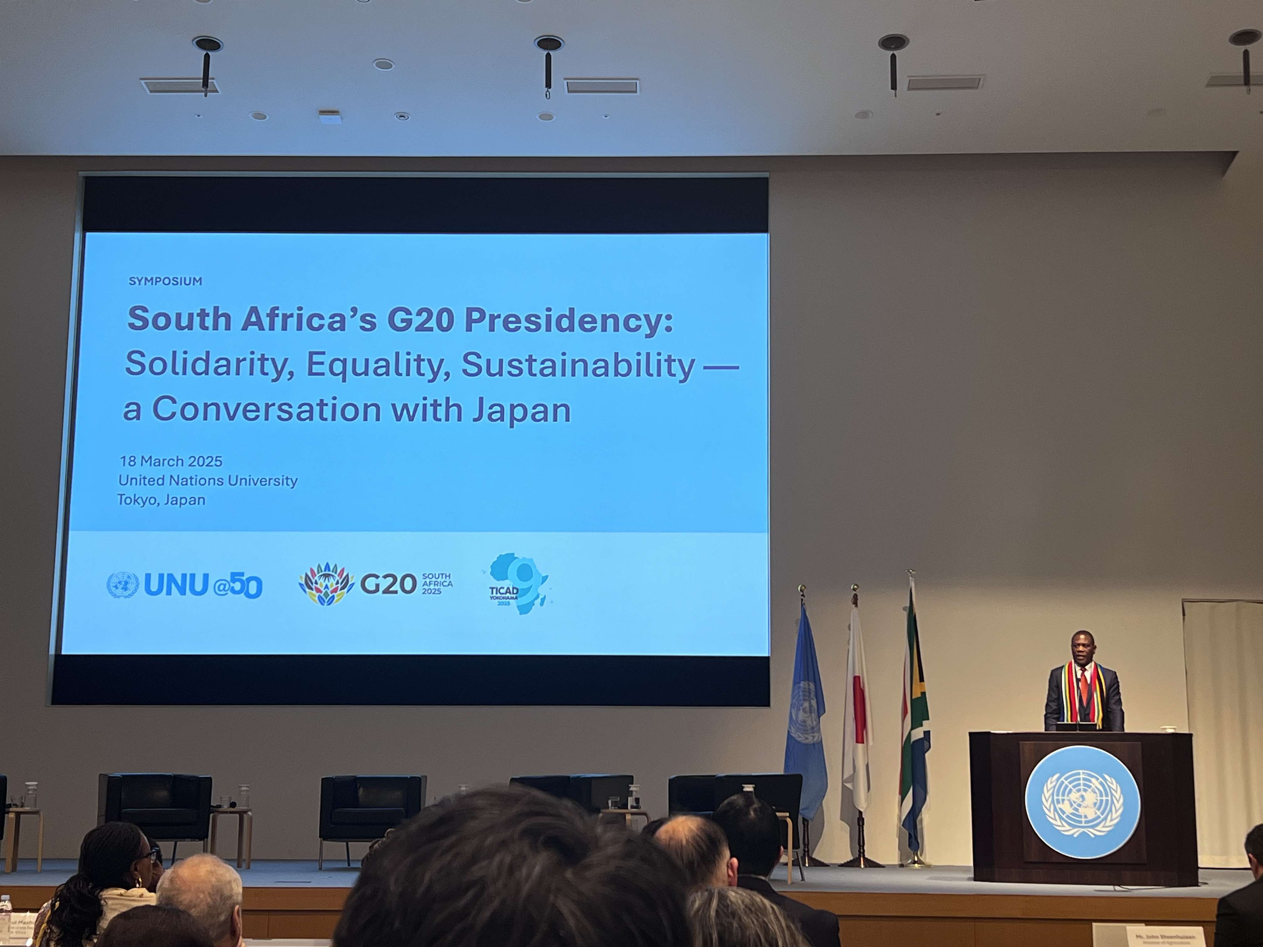 The United Nations University, in partnership with the Embassy of South Africa in Japan co-hosted the symposium on March 18th in Tokyo, Japan. The Deputy President of South Africa, Mr Paul Mashatile delivered a keynote address under the theme "South Africa's G20 Presidency: Solidarity, Equality, Sustainability,- a Conversation with Japan.